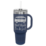 High endurance stainless steel drinkware that Polar Camel has become known for is now available in a 40 oz. Travel Mug with a handle, straw included. These travel mugs are great for personalized gifts, usable awards, souvenirs, and fundraisers!